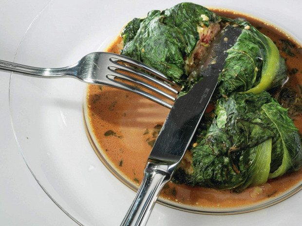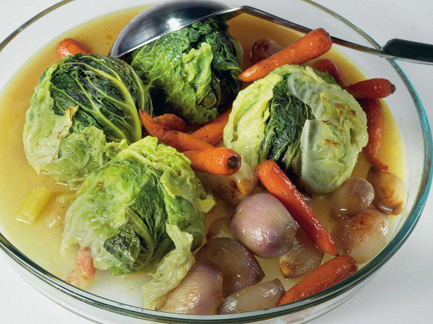 Бургундская версия капустных листьев с начинкой. Главный фокус — делать эти голубцы максимально большими, по одной штуке на порцию. Чем они крупнее, тем вкуснее.