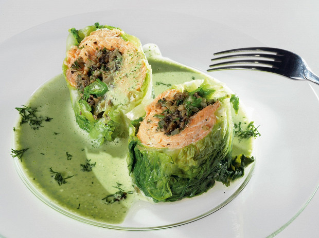 Голубцы из латука с форелью