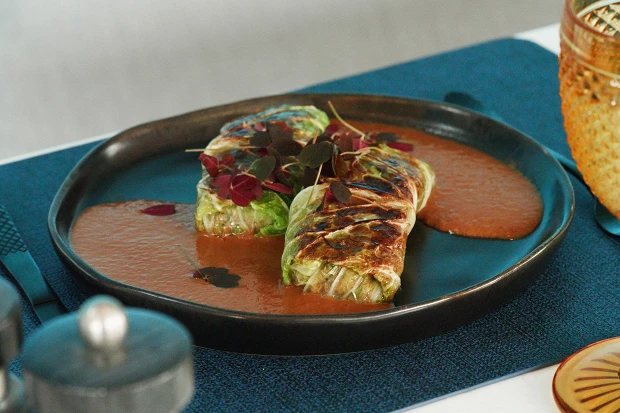 Том-ям давно перестал быть традиционным тайским супом — он превратился в целую гастрономическую субкультуру: на основе специй и пасты том-ям готовятся соусы для паст, начинки для блинов, заправки для салатов и многое другое. Мы решили скрестить азиатский и русский жанры и приготовить голубцы с креветками в соусе том-ям. Именно в нем, практически в супе, голубцы с креветками варятся, а затем им же и поливаются, приобретая характерные аромат и пряность.