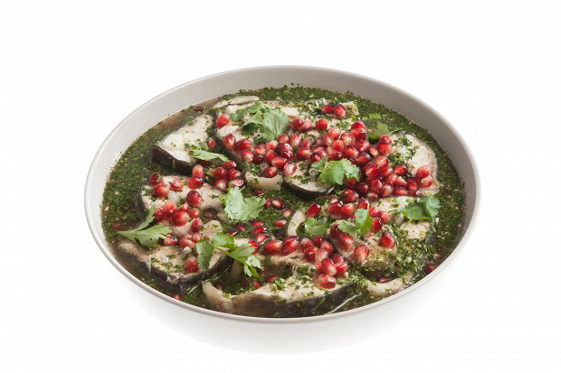 Осетрина в гранатовом соусе — нарядное застольное грузинское и советское блюдо. Осетр делает стол праздничным, а что будет вокруг — не так важно. При всем грозном виде рыба это деликатная: костей в ней почти нет, мясо нежное, практически диетическое, а шипы-звездочки можно и удалить — делается это совсем просто, — и оставить как украшение: поеданию осетра они совсем не мешают. Приготовить осетрину по этому рецепту очень просто: рыбу нужно отварить и подать с соусом из кинзы с чесноком, солью и гранатовым соком. Грузинский соус играет здесь вкусообразующую роль, но дополняет осетрину, а не перетягивает на себя одеяло.
