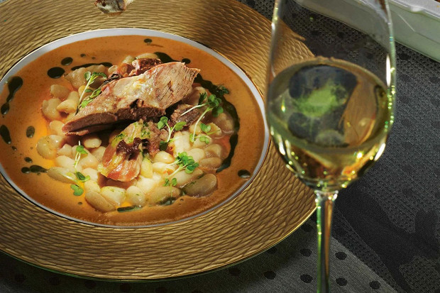Баранина с розмарином, чесноком, печеной фасолью и перечным соусом
