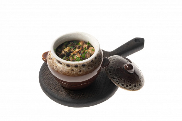 Мясо в горшочке — знаковое для русской кухни блюдо, который мы привычно ассоциируем с праздником. Мясо может быть любым: говядина, свинина, даже курица. Главное, чтобы там был крепкий микс из мяса, овощей и густого душистого соуса, в котором ингредиентам следует потомиться какое-то время. Обычно в новогоднем застолье после закусок наступает пауза — и вот самое время, чтобы убрать мясо в духовку, а потом подать на стол с пылу с жару, с пряным винным соусом и грибной заправкой. Удобно, что духовка доведет содержимое горшочков до готовности без всякого вашего участия, к тому же такая подача хороша тем, что мясо не будет стыть на столе в ожидании, пока его разберут по тарелкам, а каждый гость сразу получит свою порцию.
