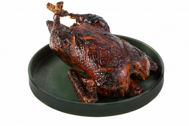У этого рецепта есть особенность: птичью кожу нужно обрабатывать каждые десять минут. За яркий цвет кожи отвечает микс бальзамического соуса и свежевыжатого апельсинового сока.