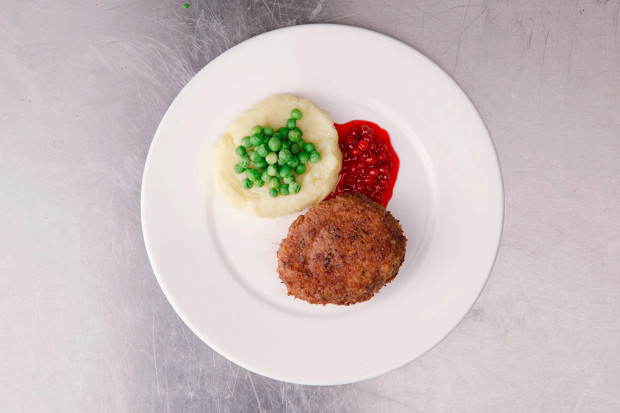 Никакого хлеба, а мясо пропущено через крупную сетку мясорубки, что добавляет котлетам текстуры. Говяжий жир, используемый в рецепте, должен быть максимально свежим и лишенным резкого запаха зрелой коровы.