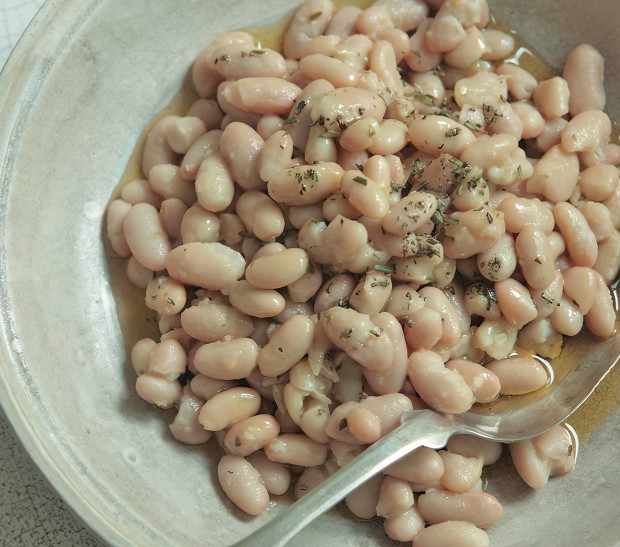 Нежная сливочная фасоль, которая может быть и гарниром, и частью салата, и самостоятельной закуской. Розмарин, лимон и оливковое масло добавляют ей массу достоинств. Рецепт из книги «Nigelissima» Найджеллы Лоусон.