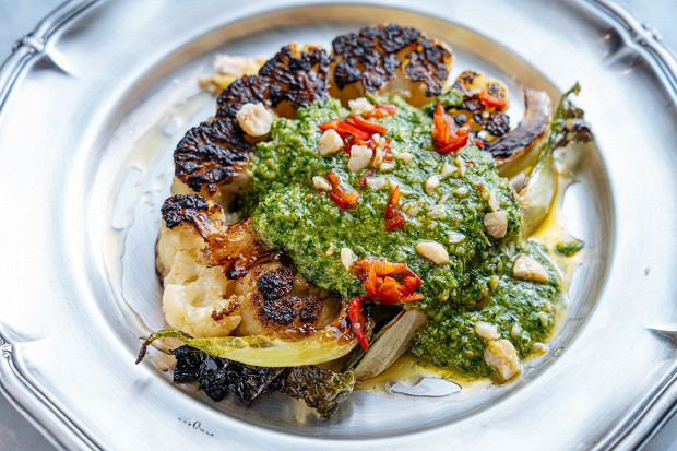 Идеальный способ подать цветную капусту — обоженный стейк нейтральной капусты с радостью встречается со всякими добавками вроде соуса чимичурри, фундука и чили.