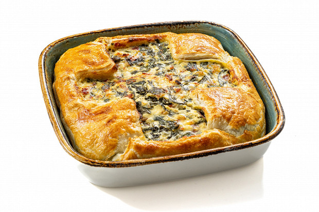 Щавель может быть как и самодостаточной начинкой, так и составляющей одной большой гастроистории. Вот тут как раз такой пирог, в котором множество разных ингредиентов. Помимо щавеля есть бекон, пармезан, чеснок, мускатный орех и черный перец.