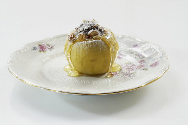 Оказавшись в духовке, яблоко начинает вовсю отдавать свой запах и сок, а его текстура превращается в нечто десертное. Яблоки нужно проколоть зубочисткой, чтобы они не лопнули во время готовки.