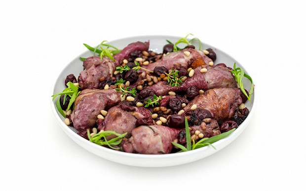 Куриная голень с вишней и кедровыми орешками