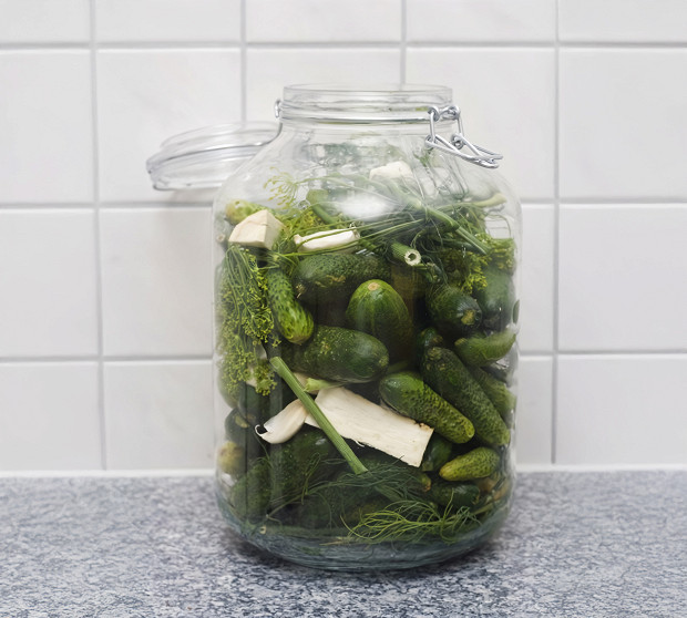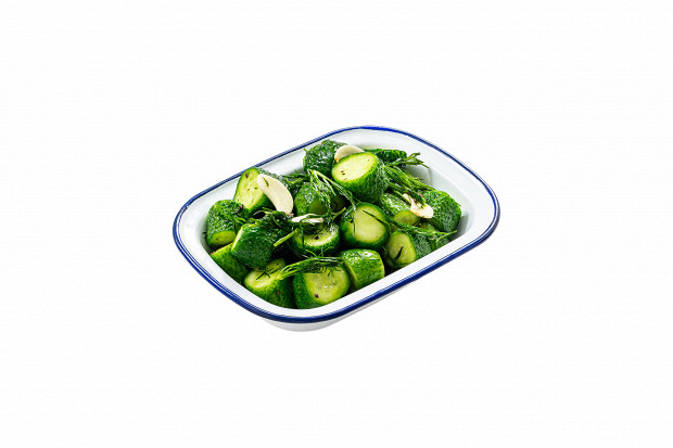 Идеальная еда, в которой сочетается и алкоголь, и закуска. Помимо привычных трав и специй, тут есть еще перец чили и анис. Огурцы заливаются горячим рассолом и солятся 24 часа.