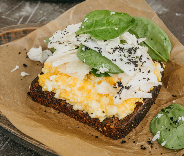 Скрэмбл на бородинском тосте с цветной капустой и трюфельным маслом