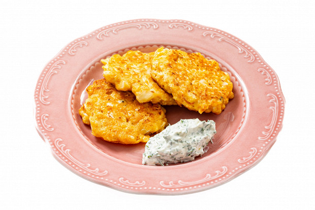 Идея, признаемся, не наша. Еще в 2016 году американка Гейл Беккер запатентовала «рис из цветной капусты» как основу для безглютеновой пиццы. Мы же придумали рецепт, который помогает изрубленной в крошку капусте раскрыться с лучшей стороны: в ней самой есть и хруст, и определенный сливочный оттенок, который усиливает замешанная в тесто сметана. Голубой сыр добавляет пикантности и не дает вкусу оладий впасть в монотонность. А добавление яичного желтка не только связывает тесто воедино, отчего оладьи не разваливаются на сковородке, но и придает им цвет не белесый, а аппетитно-цыплячий.