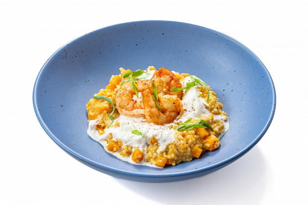 Ризотто из пшена с тыквой и креветками