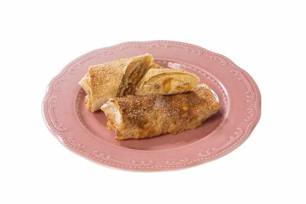 Штрудель, как известно, представляет собой рулет — и почему бы не воспользоваться уже готовым лавашем? Важный нюанс: когда будете готовить, сначала выберете себе подходящие яблоки, звонкие и сочные, найдите вкусные и желательно свежие грецкие орехи и также всерьез отнеситесь к выбору изюма — он должен быть с приятной кислинкой.