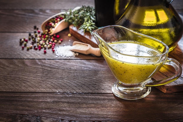 Это не опечатка: винегрет — это и наш салат, и классический соус французской кухни, название которого происходит от vinaigre, что значит «уксус». Соедините 150 грамм подсолнечного масла с 2-3 столовыми ложками винного или бальзамического уксуса, добавьте соль, черный перец и все тщательно перемешайте венчиком или в банке с крышечкой, хорошенько ее встряхнув. В результате получите легкую заправку, которая подходит к абсолютно любому салату (а не только к винегрету).