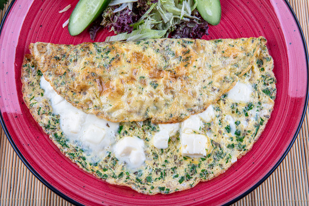 Классика, которая никогда не надоест. Сыр можно брать совершенно любой и играть со вкусом: выдержанный, с выраженным вкусом сыр вроде пармезана или грюйера стоит натереть на крупной терке и вмешать в омлетную массу перед жаркой или, как только яйца схватятся, посыпать омлет сырной стружкой, чтобы яйца и расплавленный сыр стали единым целым. Брынзу или фету лучше раскрошить и использовать как начинку или нарезать мелкими кубиками и жарить вместе с яичной массой. Мягкий творожный сыр прекрасно смешивается с яйцами и добавляет омлету сливочности, а сыр с голубой плесенью — пикантности. А там, где сыр, там и зелень: петрушка, укроп или, чуточку изысканнее, припущенный на сливочном масле лук-порей отлично дополнят яично-сырный вкус.