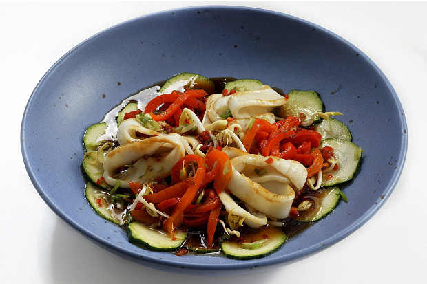 При всех достоинствах у кальмара есть одна слабость — он практически не имеет вкуса. Зато в нем есть легкий морской аромат, который присущ, скажем, устрицам. Главное, эту легкость не потерять. В салатах советского времени, в море майонеза она исчезала без следа. Поэтому более современно звучат легкие звонкие заправки, морскую свежесть кальмара можно усилить при помощи лимонного сока, кунжутного масла и соевого соуса. Можно, конечно, вдобавок отметить, что, в отличие от майонезных салатов, которые на следующий день становятся чуточку вкуснее, этот нужно съесть сразу, как он приготовлен. Но какой толк — на следующий день от легкой закуски точно ничего не останется.