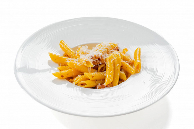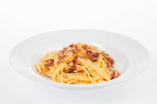 Карбонара — наверное, самая известная в мире итальянская паста. Классический рецепт карбонары — это спагетти или ригатони с кусочками сыровяленых свиных щек гуанчале (реже с грудинкой панчеттой), c cоусом из желтков, черного молотого перца и овечьего сыра пекорино. Когда блюдо пересекло границы Италии и стало международным хитом, в его рецептуре появились ингредиенты попроще: гуанчале часто заменяют обычным беконом, а пекорино — любым твердым соленым сыром.