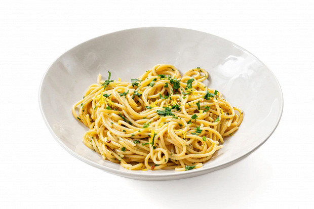 Жарким летом мы на редакционной кухне придумали эту облегченную версию карбонары: без сытного бекона, зато с анчоусами и зеленью. Получилась легкая паста со средиземноморским акцентом и намеком на классическую карбонару.