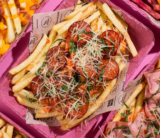 За основу рецепта Дмитрий Чернышов, шеф-повар SOS. Café, взял картофель под интригующим названием путин (от французского слова poutine) — квебекское блюдо из разряда фастфуда, состоящее из картофеля фри, обычно посыпанного молодым рассольным сыром и политого слегка подслащенной подливкой. Появился путин в Квебеке в 1950-х годах, в 2000-х популярность перекинулась на другие провинции и даже страны (США, Франция, Бельгия). К каноническому рецепту постоянно добавляются все новые вариации: эта отсылает к Италии, к классической пицце с томатом и пеперони.