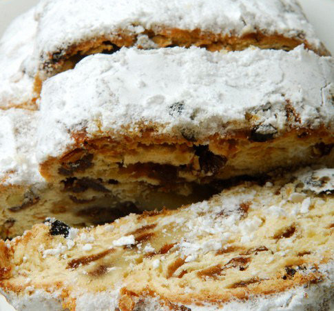 Особенности этой породы кексов — тяжелое, очень сдобное тесто (по классической технологии к каждому килограмму муки добавляется 3 кг сливочного масла), которое густо шпигуют цукатами, орехами и изюмом. Правильные штоллены выпекаются за 30–40 дней до Рождества, густо смазываются медом и сливочным маслом, заворачиваются в пергамент и отправляются «созревать» на полку буфета или в подпол. У толстого слоя сахарной пудры, которым штоллен покрывается в самом конце, есть свое сакральное значение — кекс символизирует младенца Иисуса, завернутого в белоснежные пеленки. Рецепт приводим, а также смотрите наш подробный мастер-класс — тут.