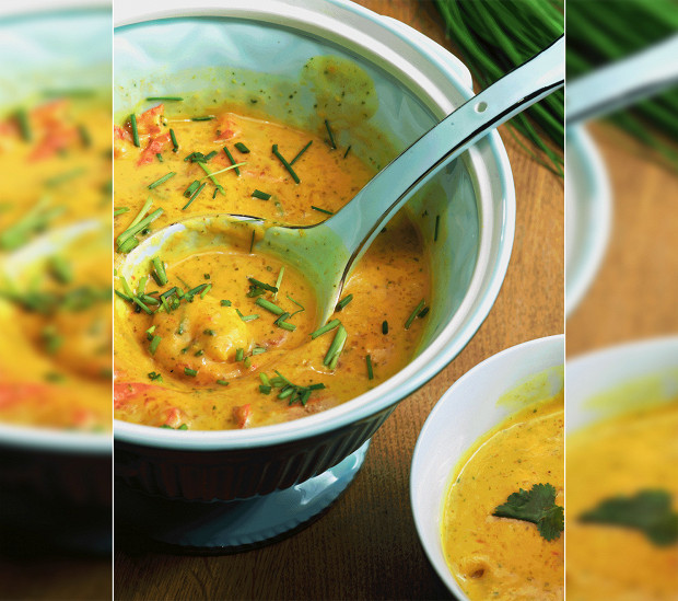 В этом рецепте Таиланд встречается с Францией. В рецепте есть и кокосовое молоко, и паста карри с рыбным соусом, и одновременно с этим коньяк.