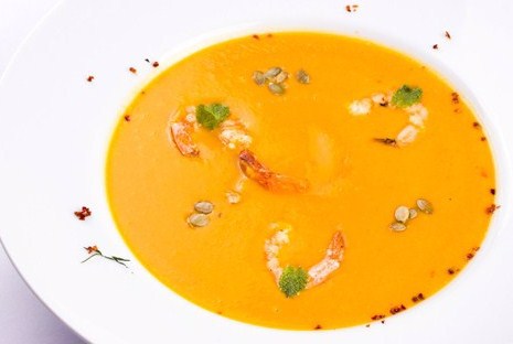 Как и предыдущий вариант, этот рецепт о том, как сделать тыквенный суп более сытным. Морепродукты — лучший вариант, они достаточно легкие, чтобы не перебивать тыкву, гармонировать с ней, но осязаемые, чтобы сделать текстуру супа интереснее, а вкус насыщеннее.