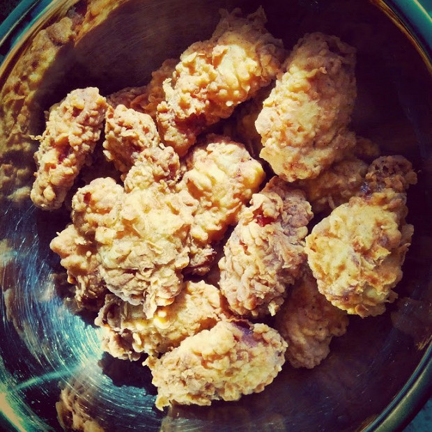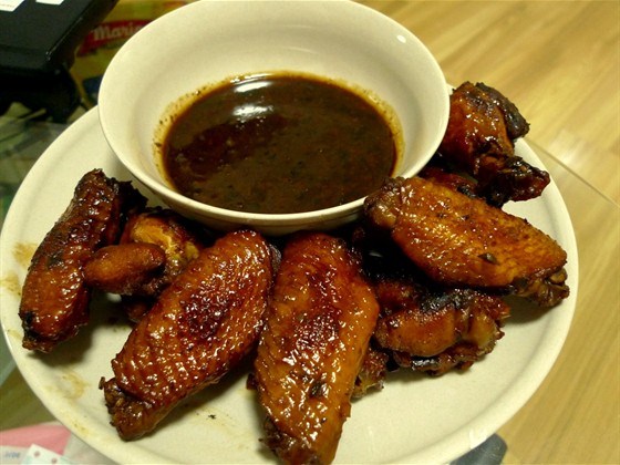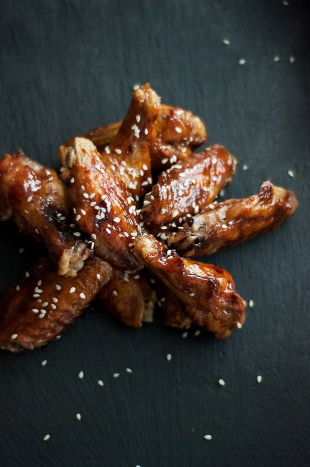 Проще некуда: крылья три часа маринуются в смеси из соевого соуса, соуса чили, чеснока и красного стручкового перца, после чего отправляются на 40 минут в духовку. Или на подольше.