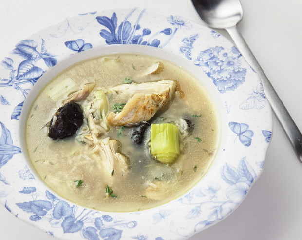 Шотландская праздничная похлебка, в которой курицу сначала также нужно обжарить, а затем залить уже готовым куриным бульоном. Засыпают этот суп рисом и черносливом, взятым в равных пропорциях.