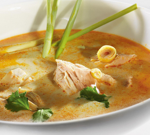 Сложносочиненный тайский суп, в котором помимо курицы прописаны еще и креветки. Рецепт из московского ресторана тайской кухни Black Thai.