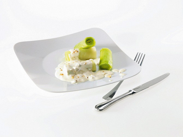 Салат из порея с заправкой из голубого сыра и нежирной сметаны