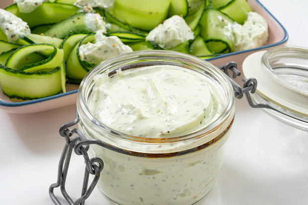 Альтернатива майонезу — более интересная, пикантная и полезная. Фета здесь измельчается блендером в пасту и превращается в густую основу для салатной заправки, которую дополняют греческий йогурт, оливковое масло и мята. Такой соус — сам по себе достаточно сытное дополнение к салату из овощей. Овощи, кстати, могут быть любыми — солоноватая фета отлично сочетается и со сладким перцем, и с редисом, но лучше всего со свежими огурцами, которым мы привыкли подсаливать. Или еще один вариант: нарезать свежий огурец, редис, перец и, к примеру, молодую морковку удобными кусочками, чтобы брать руками и превратить сырный соус в дип.