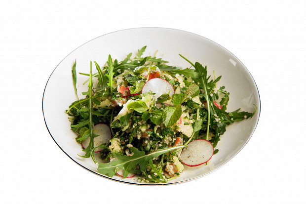 Отличный способ сложить вместе все, что лежало в холодильнике летом: кускус и уйму трав и овощей. Оливковое масло для этого салата должно быть хорошим, берите лучший образец extra virgin — душистый и, например, с легкой горчинкой.