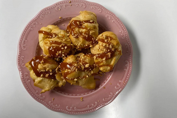 Профитроли с заварным кремом и карамельным соусом