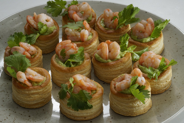 Присутствие в закуске креветок автоматически относит ее к разряду праздничных: для трех четвертей населения нашей страны креветки — продукт не локальный, а значит, деликатесный. К тому же креветки нравятся всем, за исключением разве что аллергиков: в отличие от шпрот, они ненавязчивы по вкусу, не пахнут рыбой, как кальмары, и соблазняют приятным любому глазу насыщенным розовым цветом. А если красные креветки поселить в тарталетки вместе с зеленым гуакамоле, то мини-закуски в цветах новогодней елки зазвучат на столе как «Jingle Bells».