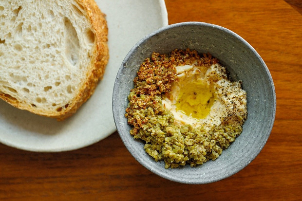 Гениальная закуска из открывшейся в сентябре винотеки Leo (Ростов-на-Дону). Замечательное переложение классики с использованием местных бюджетных ингредиентов. В сочетании с ломтем свежего мягкого хлеба тартина — лучшее, чем можно сопроводить бокал вина. Неважно какого.