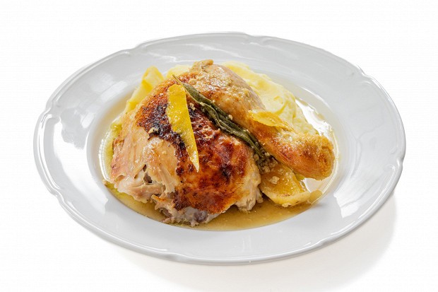 Запеченная курица — королева на любом празднике. Лучше брать целую птицу: она выглядит наряднее, чем грудки или ножки (если что-то останется, пустите на утренние сэндвичи). Рецепт Джейми Оливера прекрасен сочетанием несочетаемого — недорого, легко во всех отношениях и при этом выглядит на миллион. Душистый флер специй превратит в жар-птицу даже размороженного бройлера: чеснок дает пряность, шалфей — изысканную терпкость, а цедра гармонизирует вкусы, добавляя цитрусовую нотку. Обратите внимание, что вместо сливок с их пугающих девушек жирностью, в соусе используется молоко: запекаясь, оно гарантирует куриной кожице аппетитный ровный загар, а мясу — необыкновенную нежность.