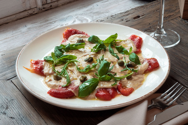 Аутентичная версия итальянской закуски вителло-тоннато подразумевает ломтики телятины под шапкой густого и терпкого тунцового соуса. Но соус этот настолько хорош, что использовать его только в одном амплуа было бы преступлением. Шеф-повар Андрей Четвернов придумал укладывать под соус тоннато маринованные перцы и в результате, сохранив узнаваемые ноты, получил от этой парочки очень яркую, живую и насыщенную закуску, которая особенно хороша под холодное белое вино. Тот самый случай, когда нам вполне по силам повторить для гостей поразившее воображение ресторанное блюдо, и оно появляется на столе столь стремительно, что ни та, что готовит, ни те, для кого готовят, не успеют заскучать.