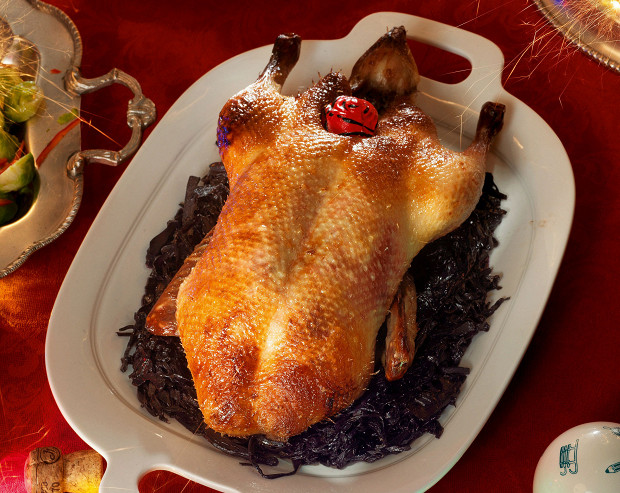 С уткой непросто: то она пересохнет, то подгорит, то грудка превратится в резину, а ножки еще сырые. В этом рецепте предварительный соленад снимает массу проблем: он делает утиное мясо нежным и ароматным (за счет ярких парфюмерных специй). После готовить ее можно без ритуальных плясок, просто оставив в духовке часа на три, пару раз сменив температурный режим. С красной капустой, которая придает медовой утке сбалансированную кислинку, получится красивая подача. А если отдельно запечь к такой утке еще и картошки яблоками — то гарантированное, монументальное удовольствие.