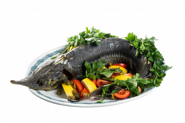 Осетрина в шампанском — тяжелый праздничный люкс. Поставишь такое на стол, и все, что вокруг, уже не важно. Важно другое — огранить такую драгоценность, как паровая осетрина, ничего не испортив. В данном случае это получается как бы само собой: при наличии целиковой рыбы и бутылки шампанского приготовление элементарное, эффект сногсшибательный.
