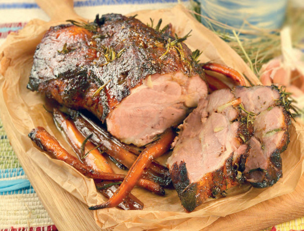 Свиная шейка в медовой глазури может по обстоятельствам служить и горячим, и эффектной закуской, если ее остудить и добавить в мясную тарелку. Приготовленную вместе с ней морковь можно добавить в ту же тарелку в качестве кондимента, а если все-таки превратить свинину в основое блюдо — тогда обязательно, нарезав на ломти, полейте свинину тем соком, в котором она запекалась, а к моркови при запекании добавьте пару антоновских яблок.