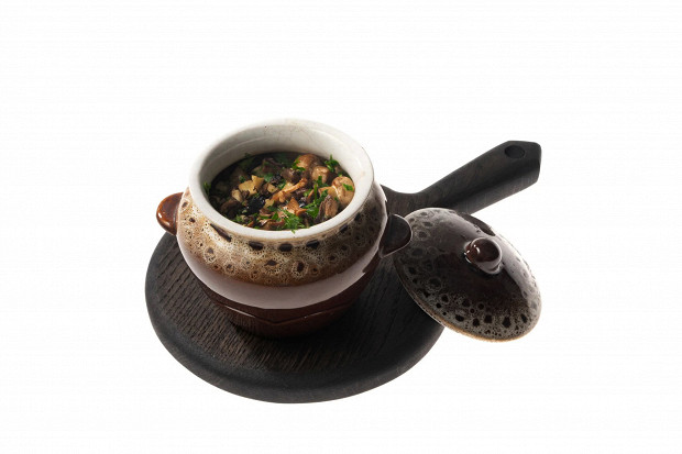 Мясо в горшочке — знаковое для русской кухни блюдо, который мы привычно ассоциируем с праздником. Мясо может быть любым: говядина, свинина, даже курица. Главное — чтобы там был крепкий микс из мяса, овощей и густого душистого соуса, в котором ингредиентам следует потомиться какое-то время. Обычно в новогоднем застолье после закусок наступает пауза — и вот самое время, чтобы убрать мясо в духовку, а потом подать на стол с пылу с жару, с пряным винным соусом и грибной заправкой. Удобно, что духовка доведет содержимое горшочков до готовности без всякого вашего участия, к тому же такая подача хороша тем, что мясо не будет стыть на столе в ожидании, пока его разберут по тарелкам, а каждый гость сразу получит свою порцию.