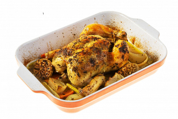 Новый год — отличный повод превратить курицу в королеву застолья и найти для нее интересное окружение. Для праздничного стола лучше брать птицу целиком: она выглядит наряднее и красивее ножек, крыльев и голеней. Для нашего праздничного меню мы выбрали именно этот вариант, курица получается очень нежной, на вкус неожиданной и не требует никаких супердорогих или редких продуктов. Сочетание белого вина, сельдерея, шалфея, розмарина и лимона дает отличный результат: суховатое куриное мясо от винного маринада становится мягче и сочнее, приправы дают пряность, сельдерей — свежесть, а лимон гармонизирует вкусы, добавляя цитрусовую нотку. В общем, если хотите удивить гостей за недорого, то это ваш вариант.
