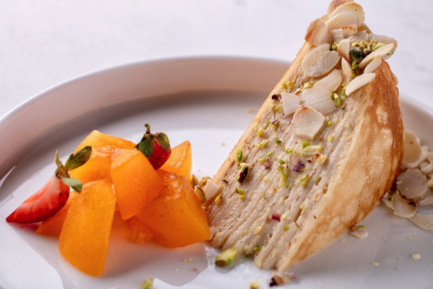 Блинный торт с хурмой и миндалем