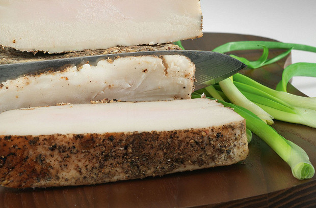 Елена Никифорова — для приготовления сала советует выбирать верхнюю часть грудинки. В нижней части — подчеревке — уже начинаются прослойки мяса.