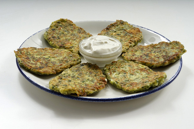 Самый зеленый, самый летний и курортный по духу вариант кабачковых оладий. Если шпинат на грядке у вас не растет, то можно положить в тесто зеленую фасоль, молодой горошек или тот же шпинат, но купленный в замороженном виде. Тут важно, что растительный белок (в шпинате и фасоли его особенно много) придает оладьям сытность и даже некоторую мясистость, ничуть их не утяжеляя. Если хотите убрать все до одного «животные» ингредиенты и сделать оладьи веганскими, замените фету на тофу, яйца можете вовсе не добавлять или вместо них положить «льняное яйцо», то есть кашицу из разведенной водой льняной муки, она не хуже яйца скрепляет тесто.