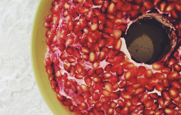 Форма в самом парадном салате эпохи застоя была важнее содержания. Сначала на середину блюда ставили дном кверху пустой стакан и вокруг него аккуратным полукружьем собирали салат, затем стакан изымали, «браслет» шлифовали обильным слоем майонеза , а верхушку устилали гранатом — зернышко к зернышку, будто и впрямь россыпь драгоценных камней. Внутри, однако, могло быть что угодно — от копченой курицы и кальмаров до чернослива и маринованных грибов. А поскольку сезонность в советское время была абсолютной (попробуй-ка найди зимой съедобный помидор!), а гранаты «выбрасывали» на прилавки ближе к декабрю, то «Гранатовый браслет» естественным образом теснил на новогоднем столе оливье, хоть и проигрывал ему в контексте многодневных послепраздничных доедалок. Название, понятно, пошло от сентиментального рассказа Александра Куприна, над которым школьницы роняли слезы в подушку, мечтая о чистой любви. Неизвестно, отразилась ли в рецептуре фамилия главного героя — Желтков, но крутое яйцо в «браслет» крошили обязательно.