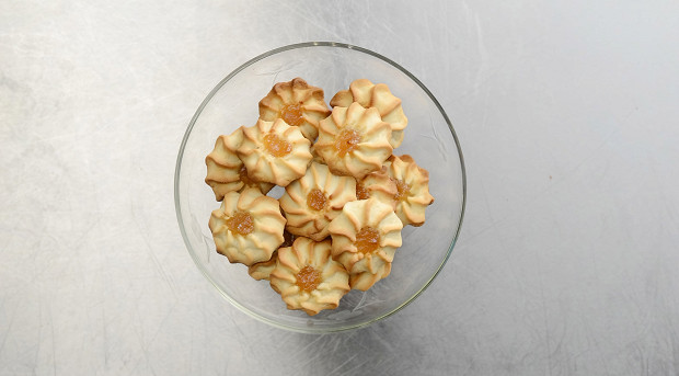Замечательное восточное печенье — рассыпчатое, душистое, красивое, с обязательной каплей джема в серединке. Если вместо джема вы решите использовать, например, брусничное варенье, то не забудьте добавить в тесто чуть больше сахара.