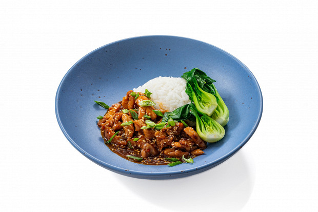Сам по себе тофу — чистый лист, на котором можно писать что угодно. Тут кулинарная задача чуть посложнее, чем с курицей. Сначала кусочки твердого тофу нужно замариновать в соусе-фейерверке примерно на час, так азиатские специи успеют войти во все поры прессованной сои. И только потом обжарить вместе со всем маринадом, добавив на сковороду перец и зеленый горошек, свежесть овощей сгладит жгучесть соуса и достроит в блюде баланс.