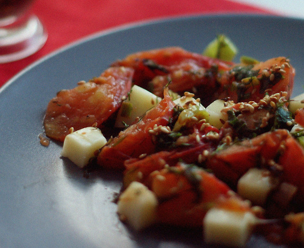 Летом — это способ приготовить легкое горячее, в остальное время года — возможность приблизить лето. Салатная смесь может быть любой — помидоры рады любому соседу.